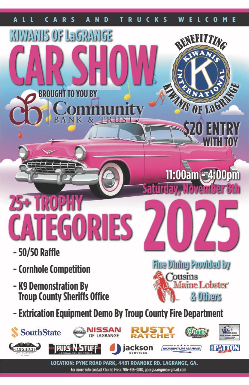 LaGrange, GA – September 24th, 2025 – Community Bank & Trust is proud to serve as the presenting sponsor of the 2025 Kiwanis of LaGrange Car Show, taking place on Saturday, November 8, 2025, from 11:00 a.m. to 4:00 p.m. at Pyne Road Park, located at 4481 Roanoke Road in LaGrange.